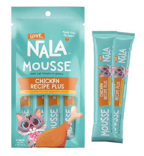 Whipped to creamy perfection, Love, Nala mousse is a luxuriously light puree that will delight your cat’s taste buds and enrich their wellbeing. Nala’s favorite chicken puree, loaded with pure poultry protein, essential amino acids, and an added serving of love, along with premium prebiotics for digestive support. Why can’t human treats be this good for you? Show your cat some extra love by hand-feeding as a treat or pouring over their bowl as a meal topper.